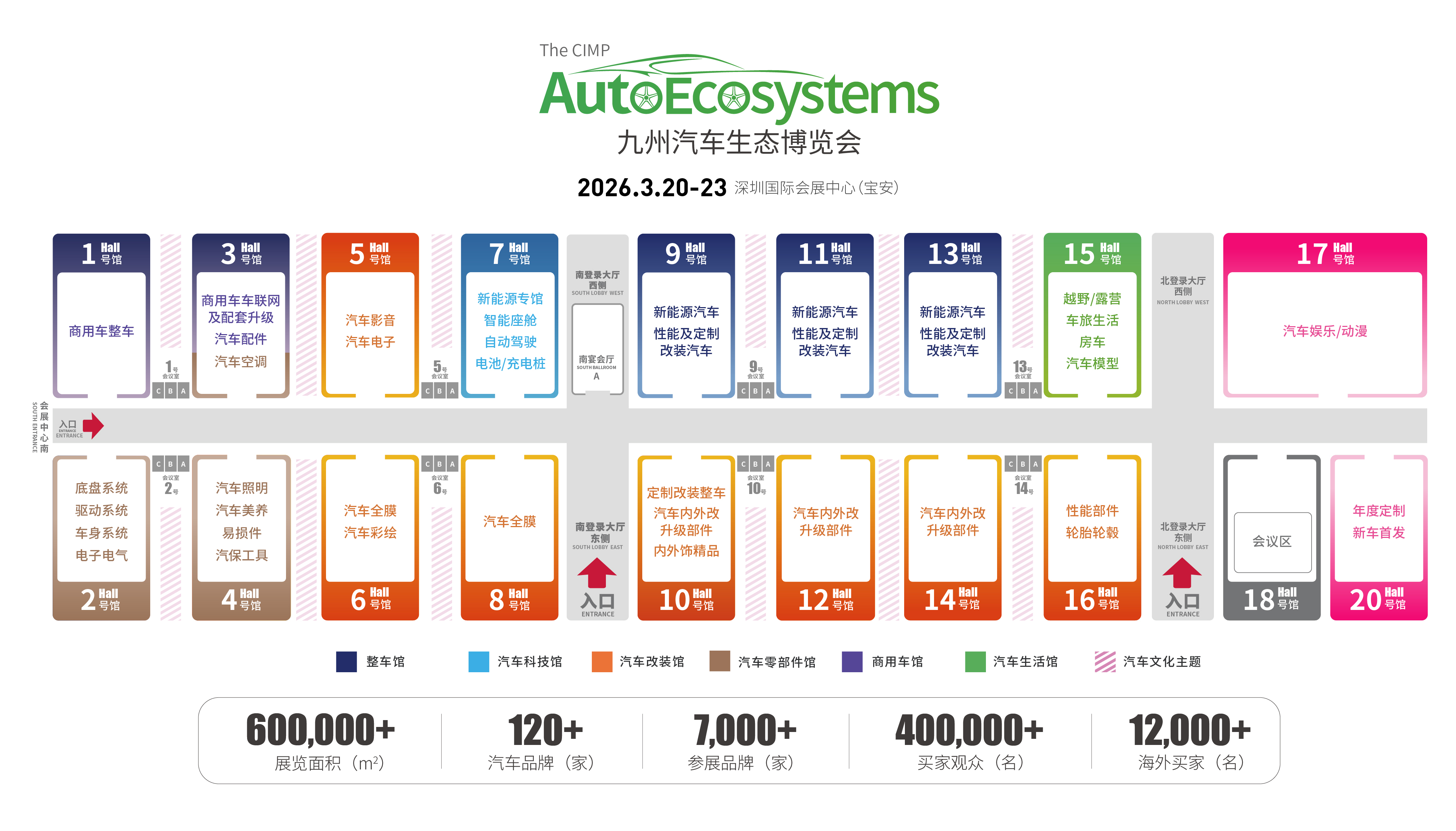 作為全球第一個汽車全產業鏈生態展貿平臺,九州汽車生態博覽會全面涵蓋乘用車與商用車市場,已成為全球整車發布、汽車科技、汽車零部件、汽車改裝、汽車文化的新產品、新技術年度首發平臺。2026年展會規模擴容至60萬平方米,匯聚全球7000+優質品牌及超40萬名專業觀眾。