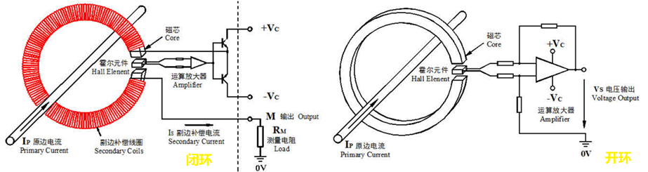 在選用霍爾電流傳感器的方案上也有區(qū)別。根據(jù)工作原理的不同一般分開(kāi)環(huán)和閉環(huán)。