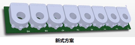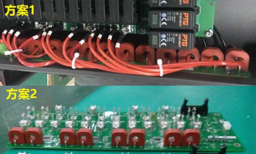 講到生產(chǎn)效率,就不得不提到分布式逆變器的組串電流檢測(cè)。它和匯流箱起著類(lèi)似的作用。作為逆變器的一部分,它的設(shè)計(jì)會(huì)更加緊密。傳統(tǒng)的立式安裝會(huì)遇到PCB板占板面積較大,穿線(xiàn)不方便的情況。組串線(xiàn)需要先穿過(guò)傳感器的孔再插入逆變器內(nèi)殼的MC4端子接線(xiàn)頭。兩次穿線(xiàn)會(huì)給工人帶來(lái)生產(chǎn)效率上的問(wèn)題。