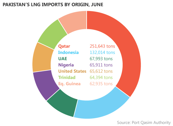 圖表顯示巴基斯坦LNG原產地進口情況