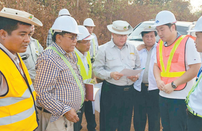 中國路橋承建的恩都—高加力公路改擴建項目是連接泰國和緬甸的重要通道,被譽為亞洲一號公路。中國路橋工程師與緬甸工程師在施工現(xiàn)場考察。(圖片來源:中國路橋工程有限責任公司)