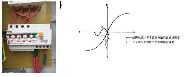 可以看到,如果交流負(fù)載發(fā)生絕緣損壞,產(chǎn)生的剩余電流不僅有交流成分,還有直流成分,如果按照慣性思維依然使用AC型漏電保護(hù)器在交流負(fù)載端進(jìn)行漏電保護(hù)顯然是不行的,不僅無(wú)法檢測(cè)直流漏電,甚至疊加的直流漏電會(huì)導(dǎo)致檢測(cè)磁芯預(yù)先磁化,導(dǎo)致脫扣值增大,破壞剩余電流保護(hù)器的原有的保護(hù)功能!
