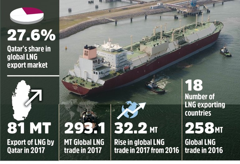 卡塔爾于2017年保留了世界上最大的液化天然氣(LNG)出口國(guó)之冠。該國(guó)去年出口了8100萬(wàn)噸(MT),使其在全球液化天然氣貿(mào)易中保持市場(chǎng)領(lǐng)先地位,占27.6%。 ,國(guó)際天然氣聯(lián)盟發(fā)布的“2018年世界液化天然氣報(bào)告”稱(chēng)。