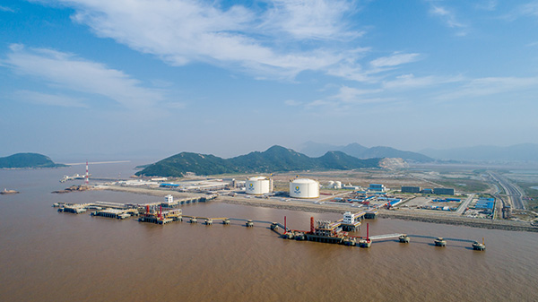 目前,該項目已經建成的一期工程可實現年處理液化天然氣300萬噸,工程包括2座16萬方LNG全包容儲罐、1座可靠泊8-26.6萬方LNG船舶的卸船碼頭、1座多功能碼頭(含兩個LNG裝船泊位,并可兼顧卸船作業)、1座滾裝船碼頭(含兩個30車位滾裝船泊位),并建有14臺槽車裝車撬、IFV氣化設施、高壓外輸、冷能發電等配套工藝及輔助設施。舟山接收站二期擴建工程預計2021年完成,年處理能力將達到500萬噸,遠期可達到1000萬噸。