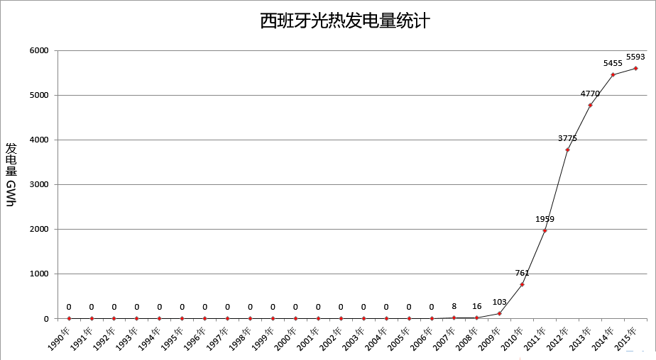 圖表:西班牙光熱發(fā)電量統(tǒng)計(1990~2015年)