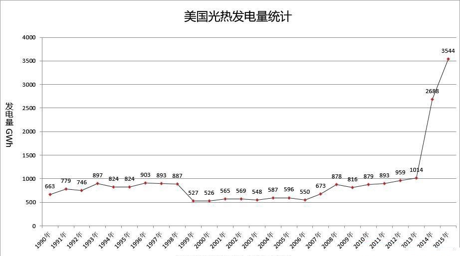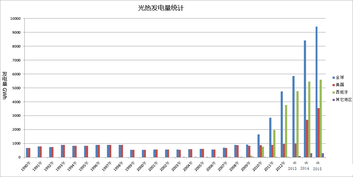 圖表:全球光熱發(fā)電量統(tǒng)計(1990~2015年)