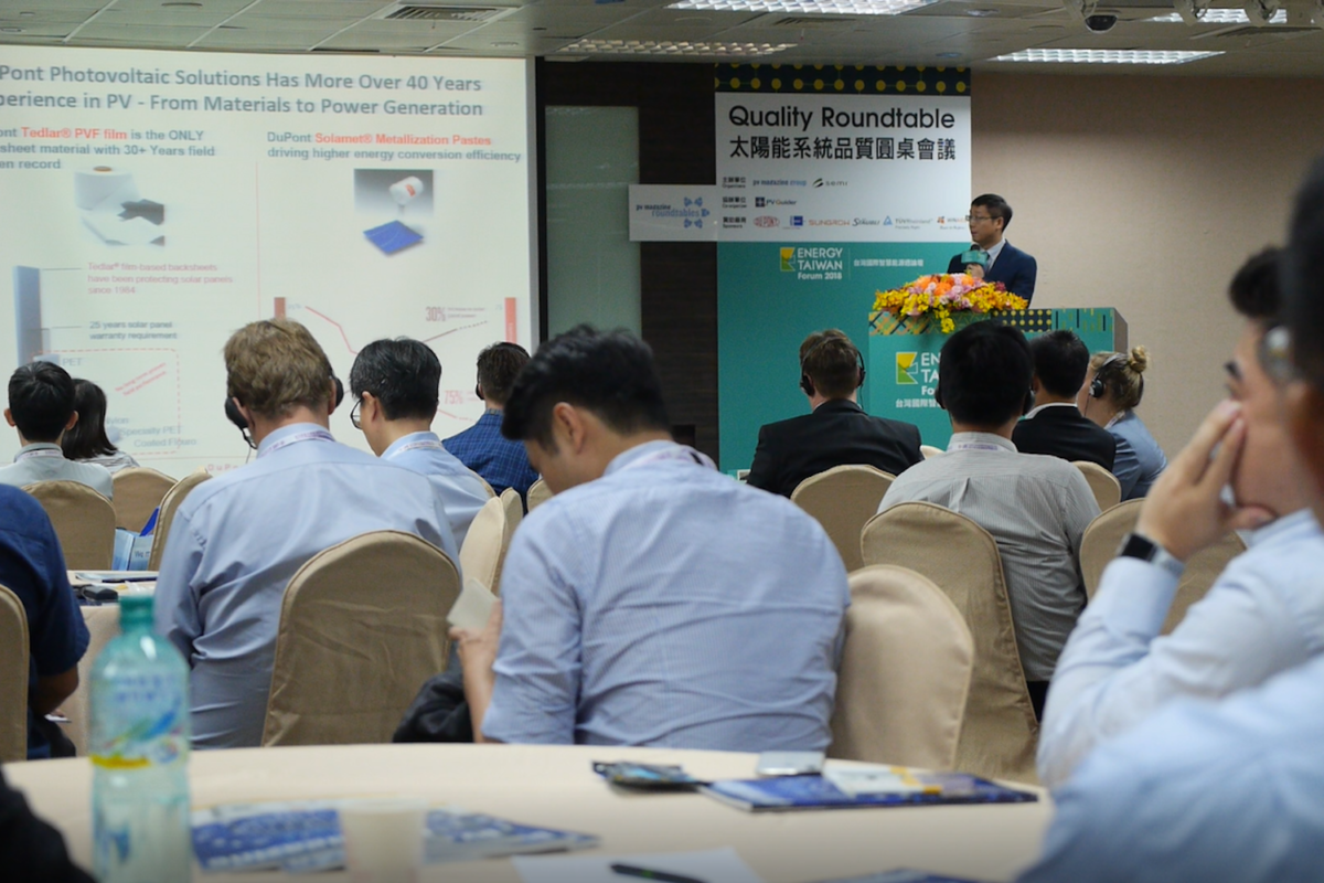 胡宏杰,中國光伏下游技術領導者和市場開發經理,杜邦光伏和先進材料,在光伏雜志的臺北Qualtiy圓桌會議上。