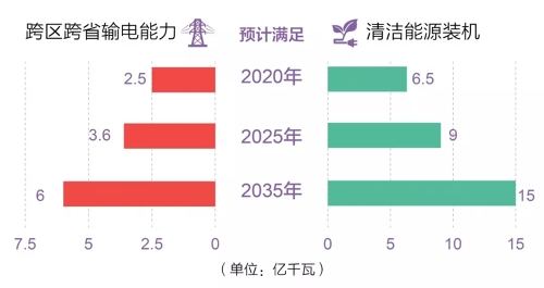 預計到2020年、2025年和2035年,國家電網跨區跨省輸電能力將分別達到2.5億、3.6億和6億千瓦,滿足清潔能源裝機6.5億、9億和15億千瓦發展需要。