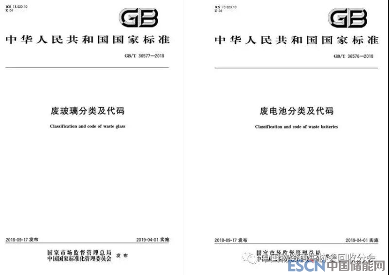 9月17日,國家市場監督管理總局、國家標準化管理委員會發布了《關于批準發布<中小學校普通教室照明設計安裝衛生要求>等454項國家標準和6項國家標準修改單的公告》[2018年第11號],該公告標志著由中國標準化研究院、中國物資再生協會、贛州市豪鵬科技有限公司、廈門鎢業股份有限公司、駱駝集團蓄電池研究院有限公司、中國環境科學研究院、東莞市邁科新能源有限公司、廣東邦普循環科技有限公司、深圳市泰力廢舊電池回收技術有限公司、天齊鋰業股份有限公司、龍南金泰閣鈷業有限公司、格林美股份有限公司、浙江天能電源材料有限公司、湖州市標準化研究院、揚州環保科技(靜脈)產業園管理委員會等單位聯合起草的《廢電池分類及代碼》(GB/T 36576-2018)和由中國標準化研究院、中國物資再生協會、中國環境科學研究院、中國日用玻璃協會、中國建筑玻璃與工業玻璃協會、上海燕龍基再生資源利用有限公司、浙江才府玻璃股份有限公司、揚州環保科技(靜脈)產業園管理委員會等單位聯合起草的《廢玻璃分類及代碼》(GB/T 36577-2018)兩項國標正式發布。