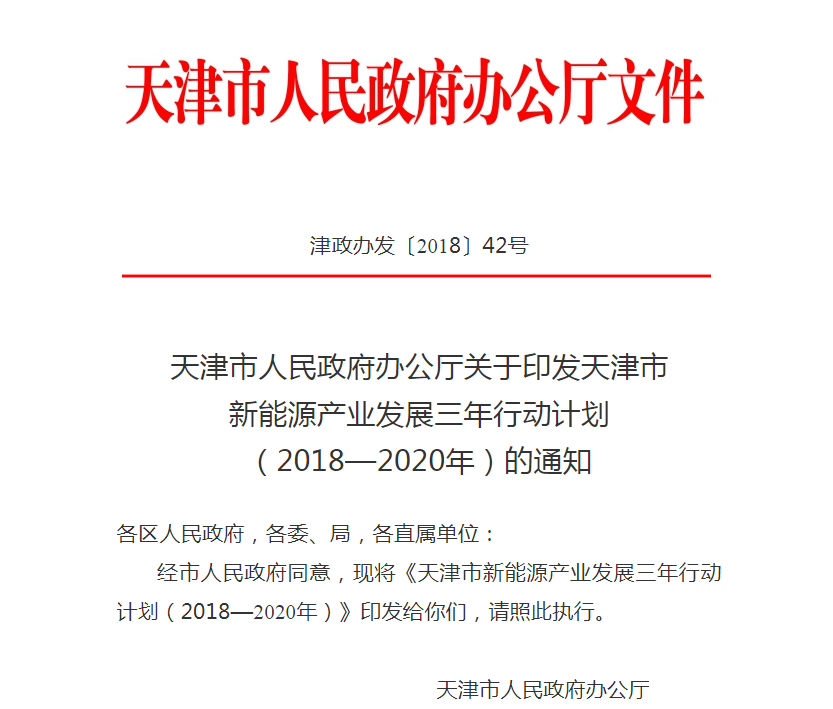 天津市新能源產業(新能源汽車、鋰離子動力電池、風力發電、光伏發電、氫能及氫燃料電池)發展三年行動計劃