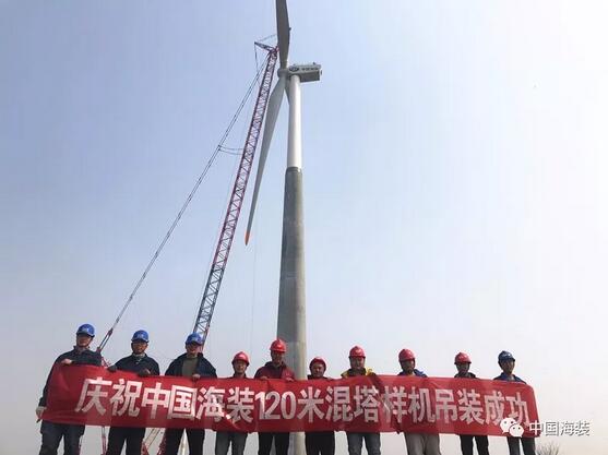 中國海裝120米輪轂高度鋼混塔筒樣機成功吊裝!