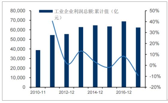 工業企業利潤總額同比增速自2016年開始好轉,2017年以來顯著提升