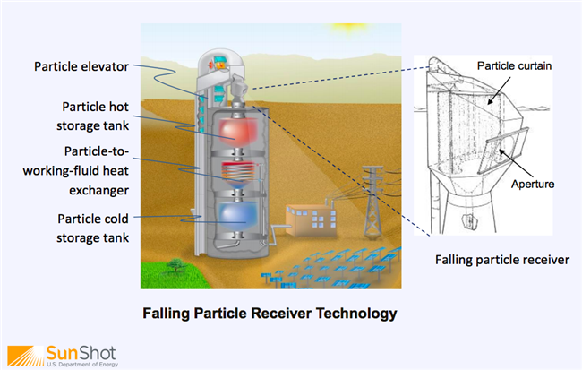 目前,研究人員已經研究了多種類型的粒子,而在此過程中,沙子的低成本優勢得以顯現。當系統輸出功率為5MW時,這種粒子吸熱器將需要2000噸沙子進行循環工作。