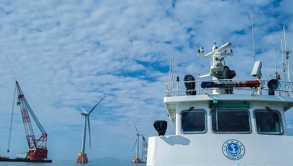 1月30日,隨著最新一臺(tái)風(fēng)機(jī)吊裝成功,全省首個(gè)海上風(fēng)電項(xiàng)目國(guó)電舟山普陀6號(hào)海上風(fēng)電場(chǎng)2區(qū)工程現(xiàn)已完成風(fēng)機(jī)安裝14臺(tái),其中8臺(tái)風(fēng)機(jī)實(shí)施并網(wǎng)發(fā)電,配套設(shè)施220千伏海上升壓站、2000噸級(jí)風(fēng)機(jī)組裝碼頭、海纜敷設(shè)工程、陸上集控中心及陸上計(jì)量站等已全部完工。為切實(shí)保障春節(jié)期間轄區(qū)大型水工項(xiàng)目停工期安全監(jiān)管,保證風(fēng)電施工水域通航環(huán)境有序,舟山海事部門(mén)認(rèn)真比對(duì)《交通運(yùn)輸部海事局關(guān)于加強(qiáng)海上風(fēng)電場(chǎng)海事安全監(jiān)管的指導(dǎo)意見(jiàn)》的文件要求,提前部署,多措并舉,確保春節(jié)期間海上風(fēng)電項(xiàng)目安全監(jiān)管工作有序開(kāi)展。