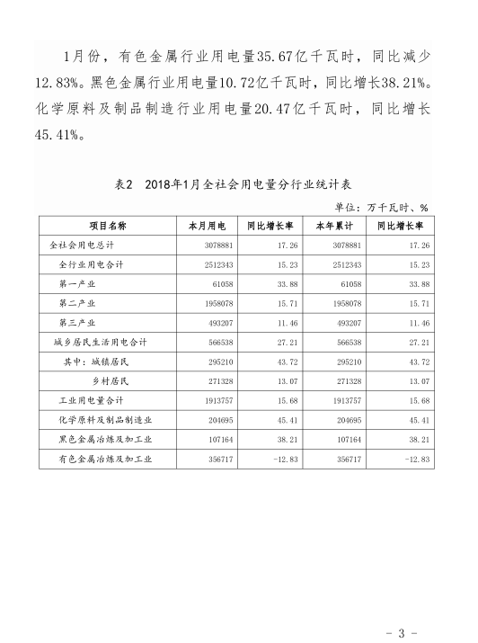 2018年1月,全省全社會(huì)用電量307.89億千瓦時(shí),同比增長17。26%。全省發(fā)電量268.7億千瓦時(shí),同比增長16.49%。以下為具體數(shù)據(jù):