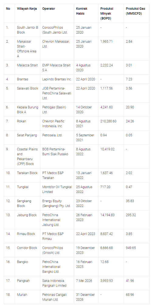 據佐科,除了在2020年六個塊跳出合同,在6月,政府將宣布其決定阻止合同到期2021年。同時,三擋是Rokan,奔突Segat和海峽班讓。但是,對于Bentu Segat而言,ESDM部門在2017年和未來20年擴大了合同范圍。