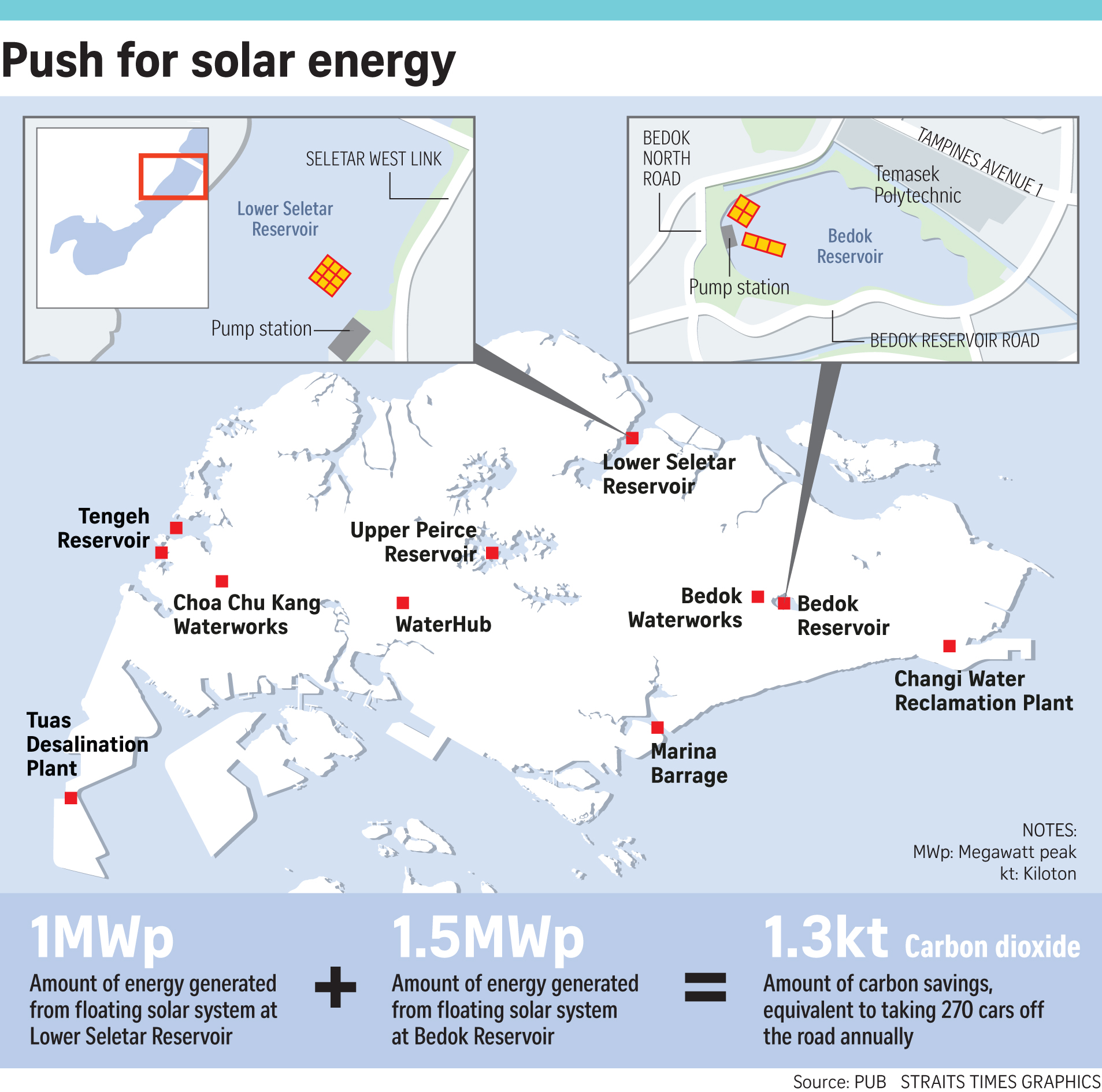 Tengeh和Upper Peirce水庫(kù)正在進(jìn)行太陽(yáng)能系統(tǒng)工程研究,現(xiàn)在國(guó)家水務(wù)局PUB正在考慮將這些水庫(kù)添加到另外兩個(gè)水庫(kù),以更環(huán)保的方式為其耗能高的水處理過程提供動(dòng)力。