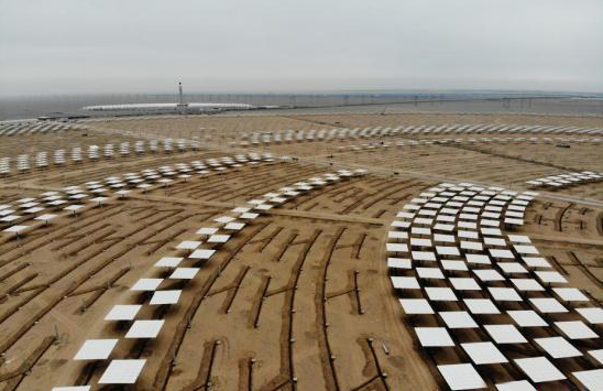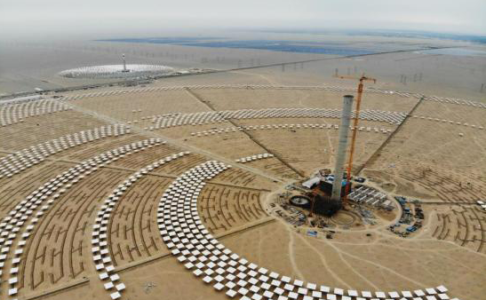 作為中國首批光熱發電示范項目的建設基地之一,該電站有全球單機最大的聚光集熱鏡場,共一萬余臺定日鏡。