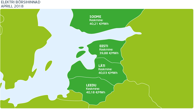 根據預期,由于溫暖季節的開始,電價在四月份下降。電氣股價在愛沙尼亞下降了12.0%,或每兆瓦時39.88歐元,芬蘭11.8%,40.21歐元,40.03歐元,或者在拉脫維亞和立陶宛13.2%,12.8%,或每兆瓦40.18歐元一個小時.