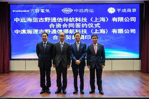 2018年5月31日,中遠海運集團所屬中遠海運科技股份有限公司和日本古野電氣株式會社、株式會社平成商事在上海簽署了合資公司合資合同。中遠海運集團董事長許立榮、副總經(jīng)理王宇航和古野電氣、平成商事相關(guān)領(lǐng)導(dǎo)出席并見證簽約。中遠海運科技董事長蔡惠星、古野電氣社長古野幸男和平成商事社長今江友博分別代表三方簽約。